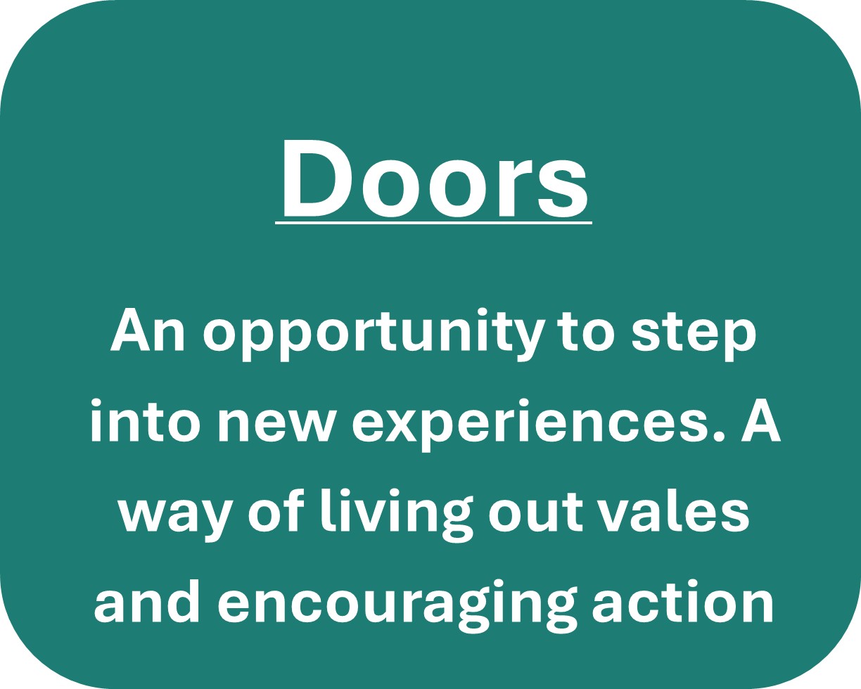 This approach is useful for creating space for encounter and reflection. Pupils do not just learn facts; they explore meaning, identity and purpose. It connects the curriculum to lived experiences. Through windows, mirrors and doors, children see how subjects relate to their own lives and the wider world. It promotes empathy and action. Spirituality is not only inward; it calls for outward engagement – doors lead to service, stewardship and justice. It aligns with Christian Vision by reflecting the idea that every child is made in the image of God, valued and called to flourish. |