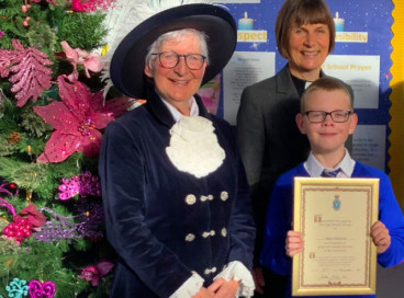 The Revd Canon Janet Nicholls, Chelmsford Diocese Rural Adviser and Agricultural Chaplain, joined the High Sheriff of Essex, Julie Fosh, on a visit to St Nicholas’ C of E Primary School in Rayleigh to present a pupil with a prestigious award.
